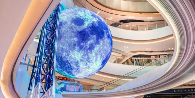 新城吾悅廣場以“旅行·家”為主題特別定制商場中庭直徑為4米的巨型球形LED屏幕,與商場的整體結(jié)構(gòu)和環(huán)境完美融合,成為商場的一大亮點(diǎn)。